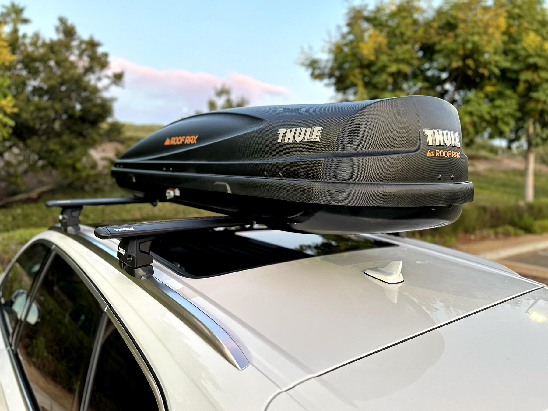 Our curated fleet of Thule cargo boxes are sized to fit your vehicle — keeping it balanced, quiet, and your trunk usable.