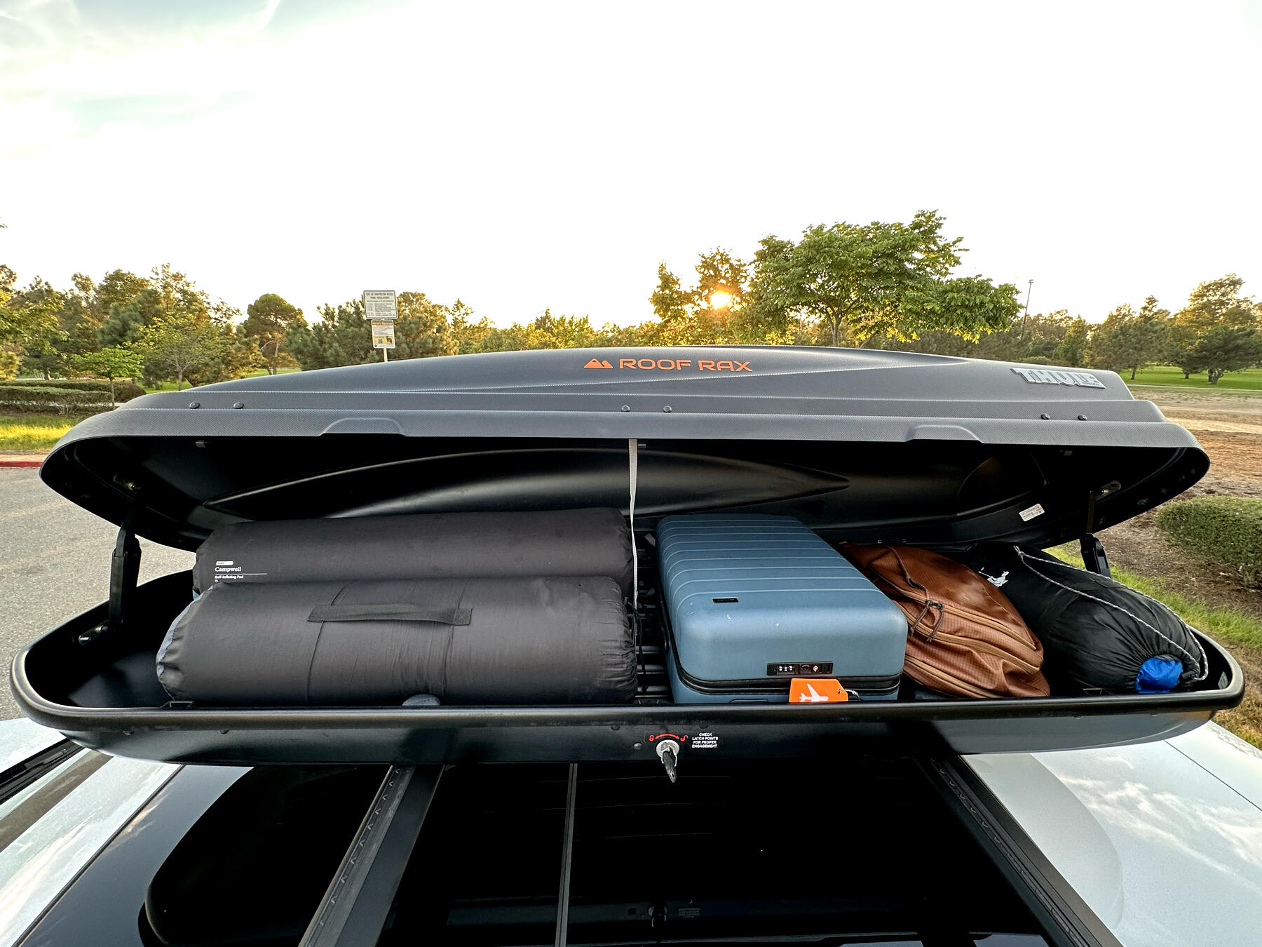 Buying a cargo box and crossbars costs $1,000+, and you need to store and install them. With Roof Rax, you only pay when you need.